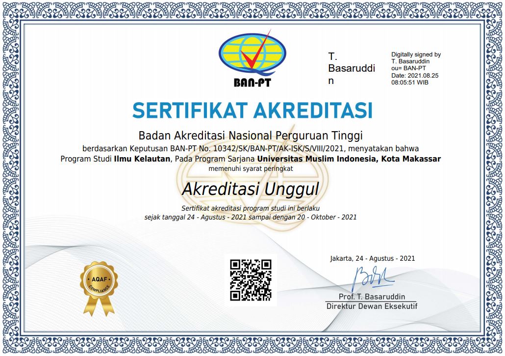 Alhamdulillah, Program Studi Ilmu Kelautan meraih Akreditasi UNGGUL oleh Ban-PT